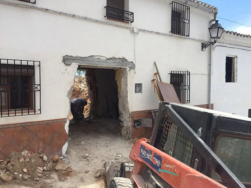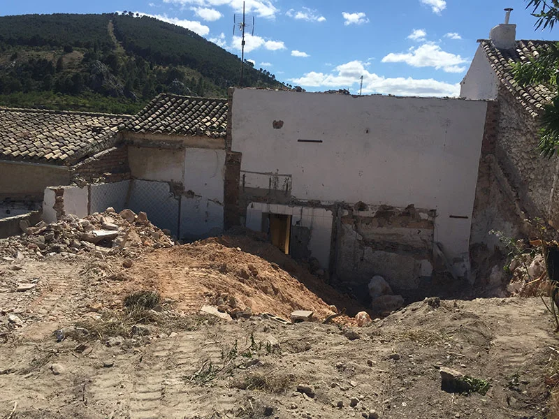 Since the build started two weeks ago, there has been incredible progress. All that remains are the exterior walls of the original 1850s house; everything else has been demolished and half of the garden has been flattened to make way for the extension. Every time we visit, something radical has changed. We went up to the village today, moving boxes from Casa Magdalena and into ‘storage’ while the build is completed. We took our now customary stroll down to see the works, and it is staggering how much has been achieved in so short a period of time. The first floor of the old house now has a brand new concrete floor and it is easy to see how much space there is now that all the small original rooms no longer exist. The builders were carefully chipping off years of interior wall rendering to expose the beautiful mellow stone that lies beneath. Where possible, we will leave this stonework exposed.